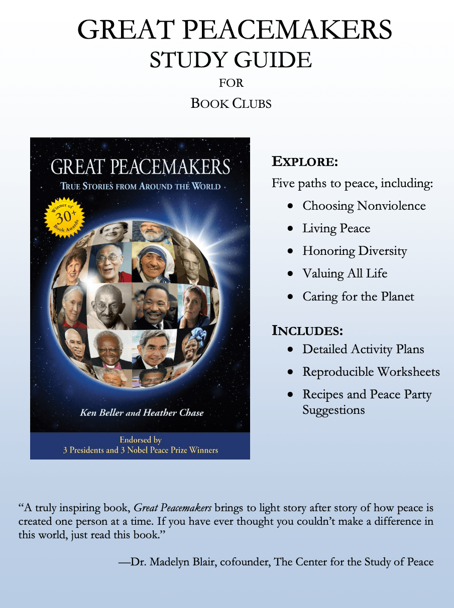 If you are interested in using Great Peacemakers in your classes, book club, etc., you can get a free review copy of the e-book, to see if Great Peacemakers is a good fit for your program.
